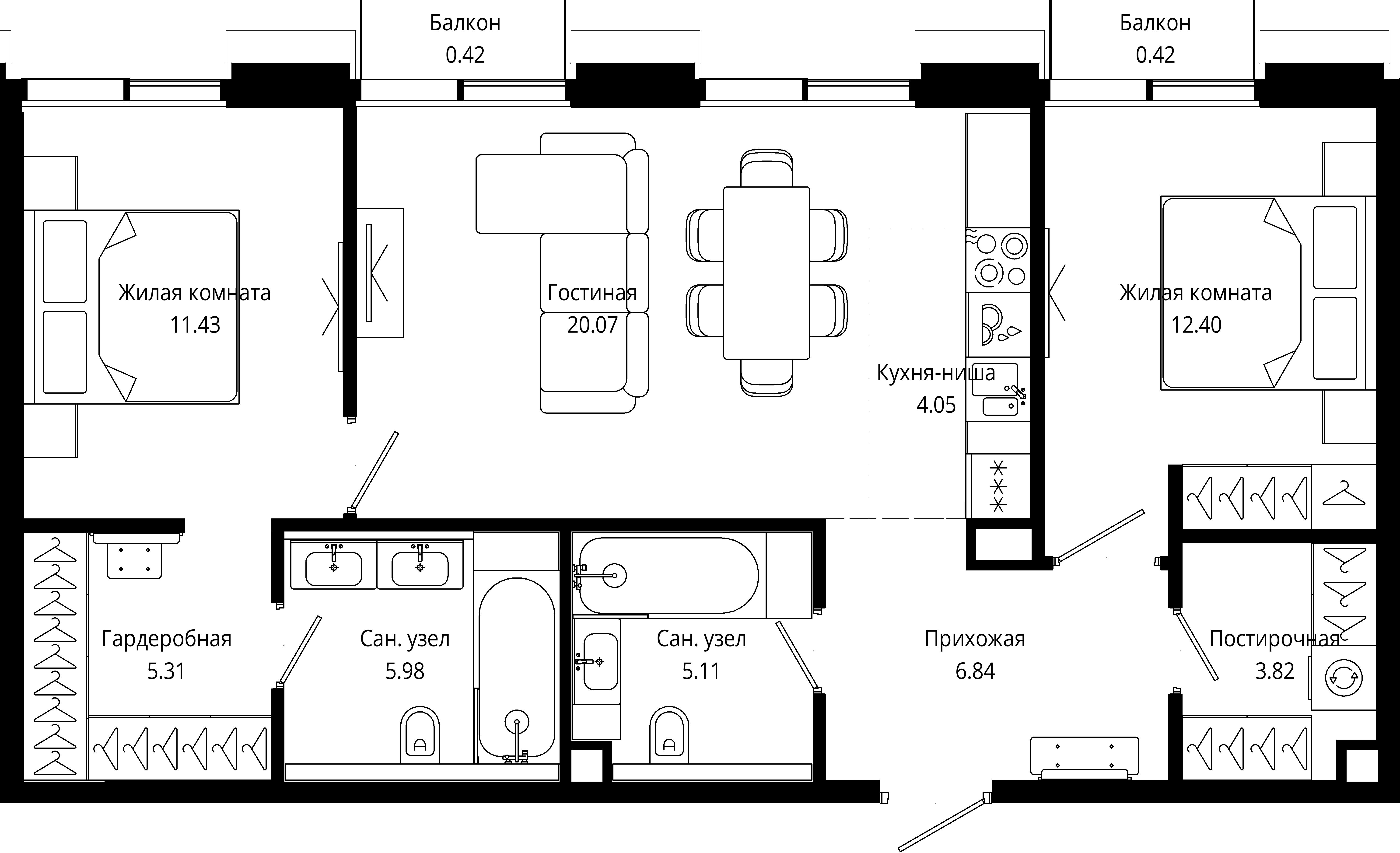 Купить 2к квартиру 75 м² в ЖК MOD (Мод)