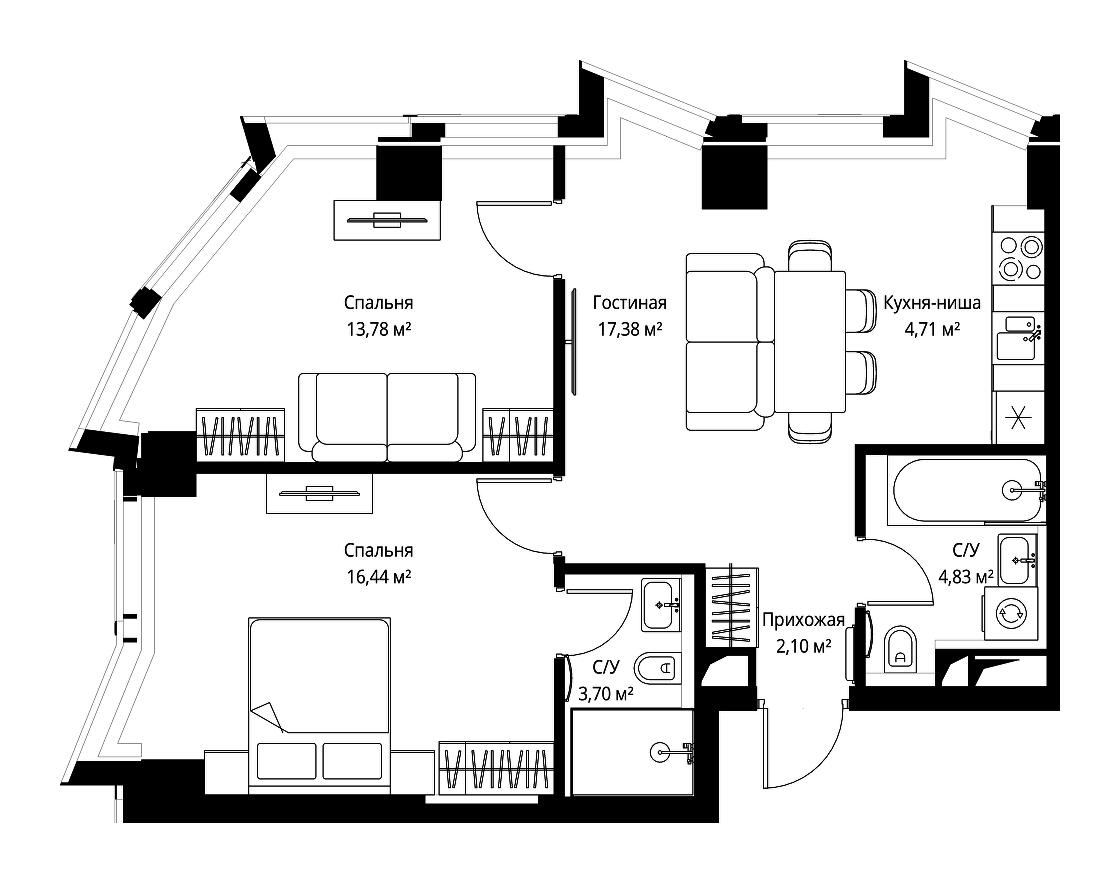 Купить 2к квартиру 64 м² в апарт-комплексе SLAVA (Слава)