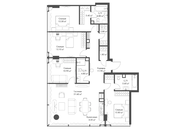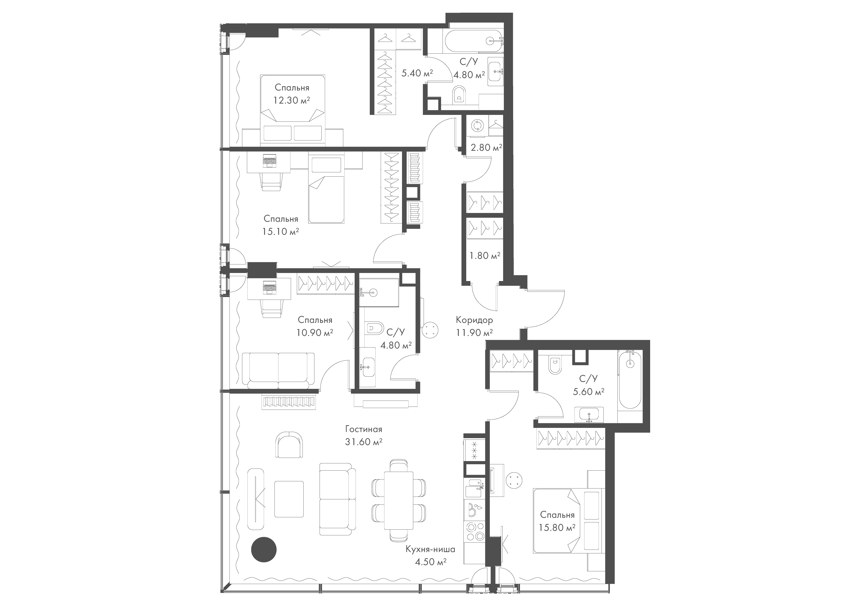 Купить 4к квартиру 127 м² в апарт-комплексе SLAVA (Слава)