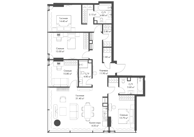 Купить 4к квартиру 126 м² в апарт-комплексе SLAVA (Слава)