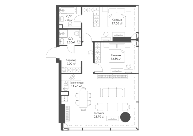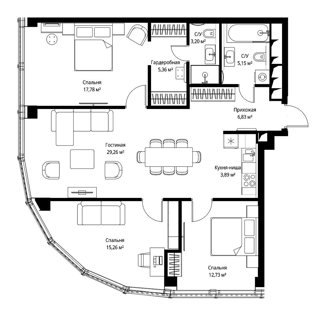 Купить 2к квартиру 83 м² в апарт-комплексе SLAVA (Слава)