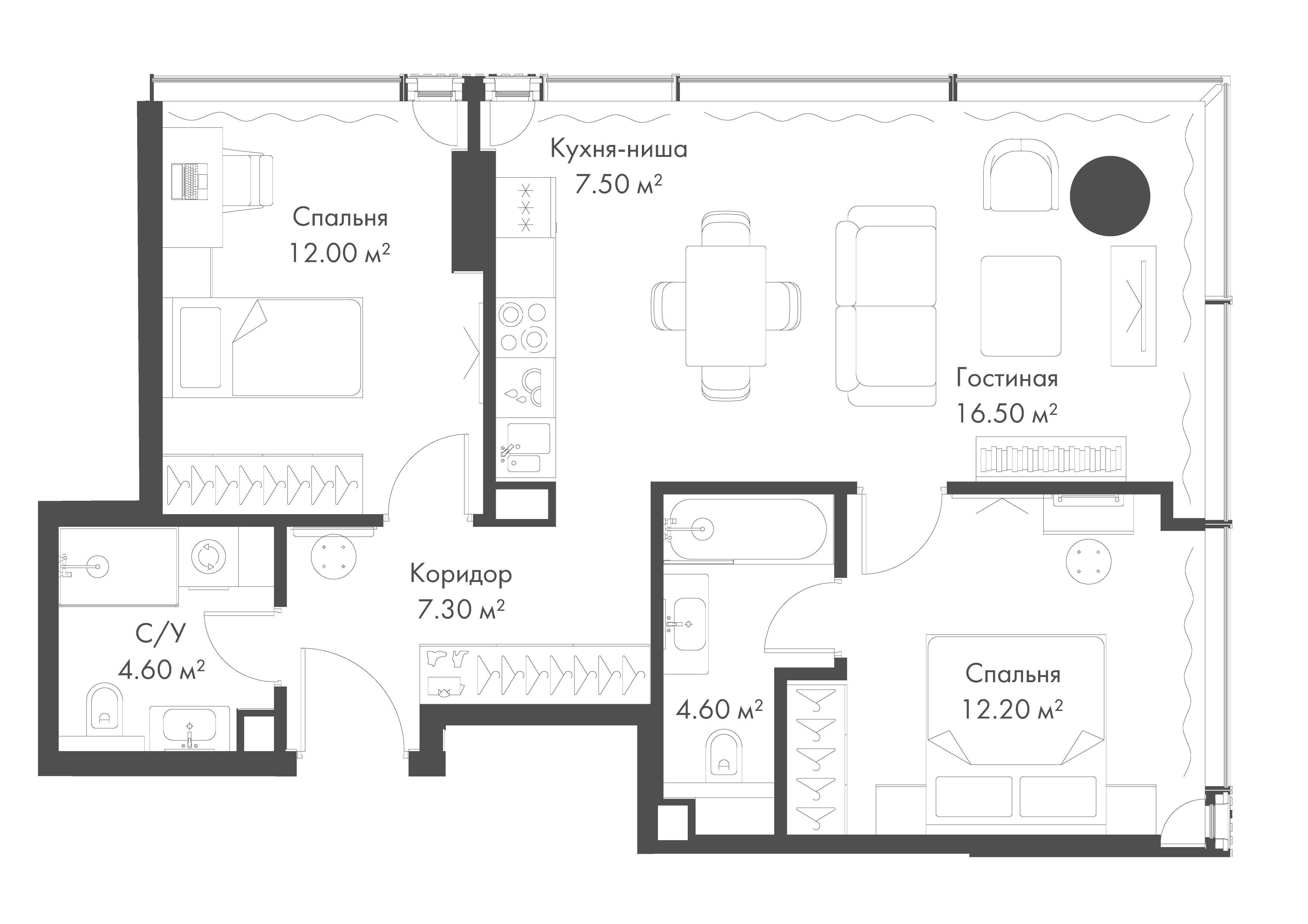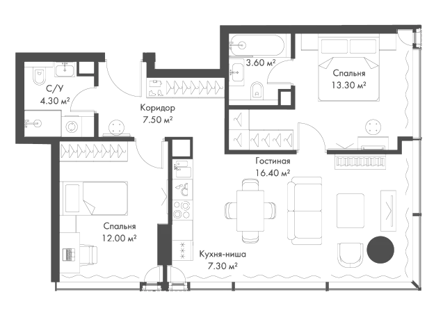 Купить 2к квартиру 64 м² в апарт-комплексе SLAVA (Слава)