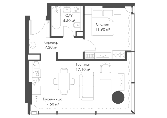 Купить 1к квартиру 48 м² в апарт-комплексе SLAVA (Слава)