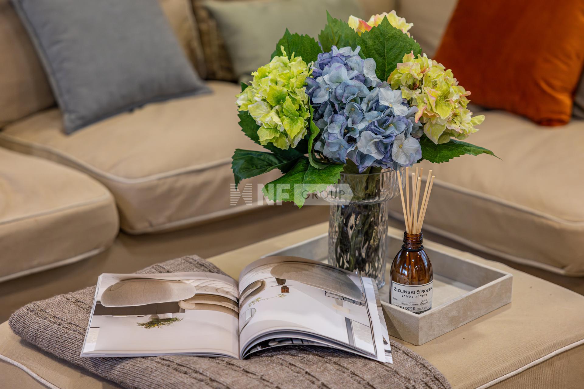 Кухня и гостиная 43,7 м2, гостевая спальня 12,7 м2, коридор 18,4 м2, гардероб 4,5 м2, кладовая 4,5 м2, су 7,5 м2, котельная 8,23 м2, гараж 31, 96 м2