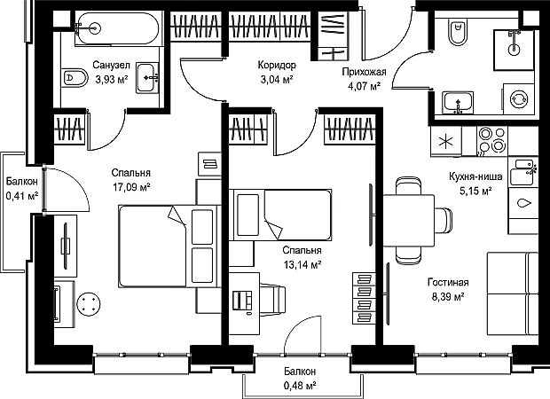 Купить 2к квартиру 59 м² в ЖК Селигер Сити