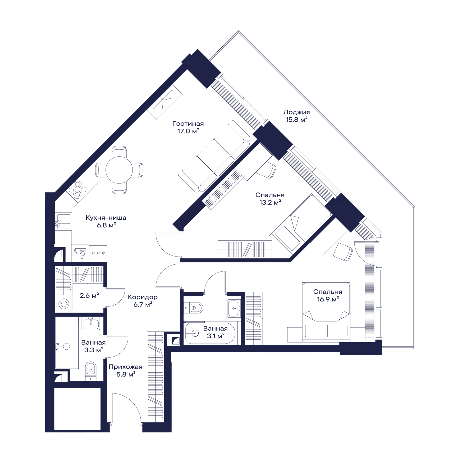 Купить 2к квартиру 82 м² в ЖК JOIS (Джойс)