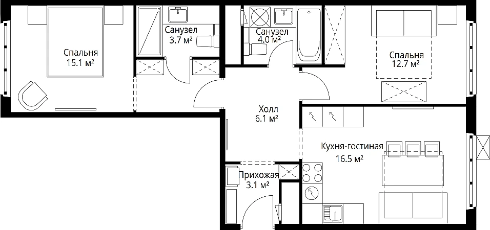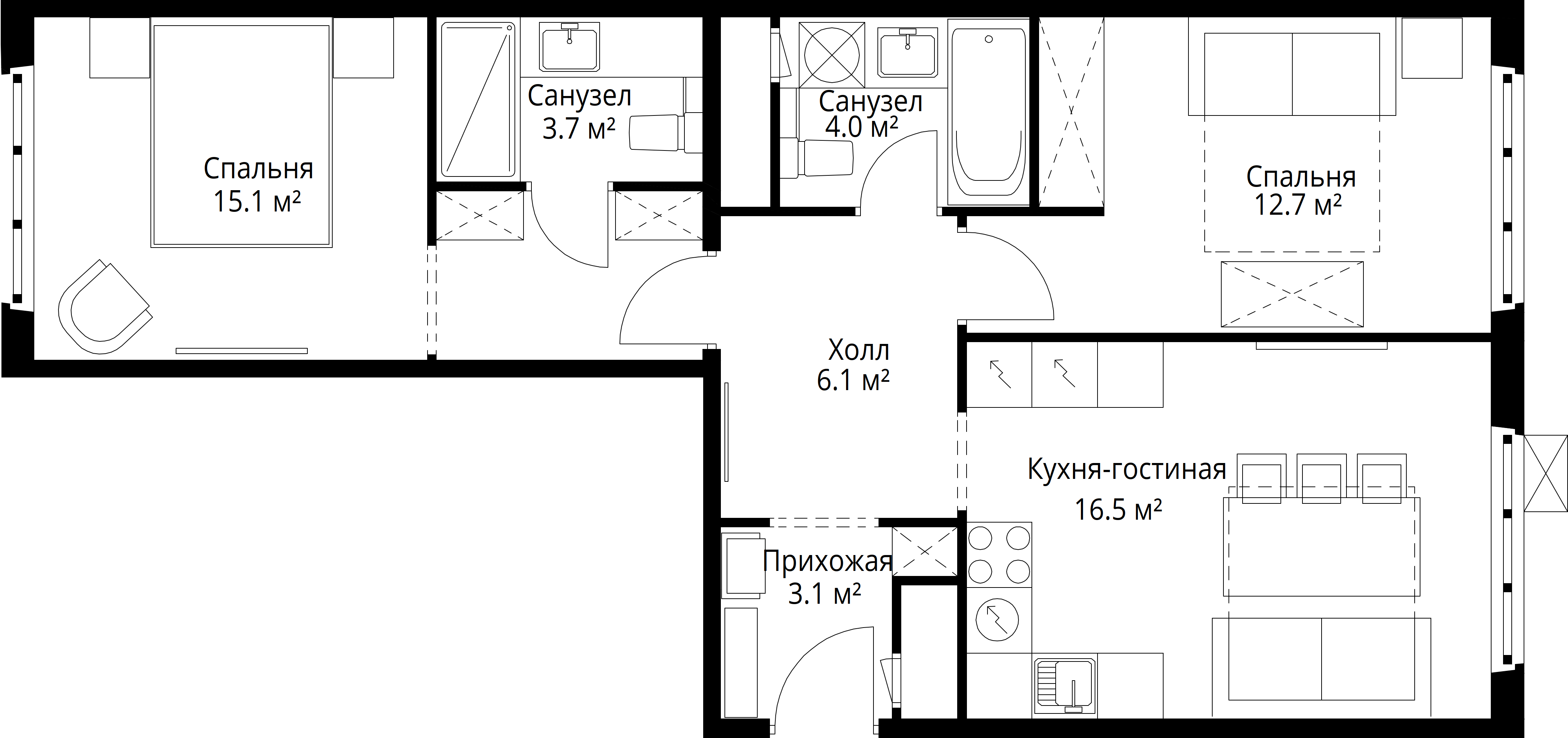 Купить 2к квартиру 61 м² в ЖК У реки. Эко Видное 2.0