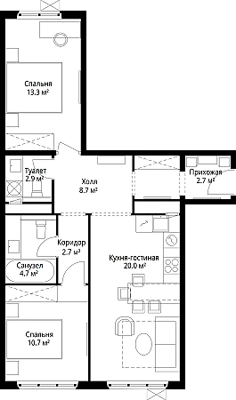Купить 2к квартиру 65 м² в ЖК У реки. Эко Видное 2.0