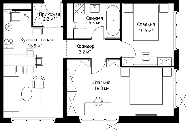 Купить 2к квартиру 58 м² в ЖК У реки. Эко Видное 2.0