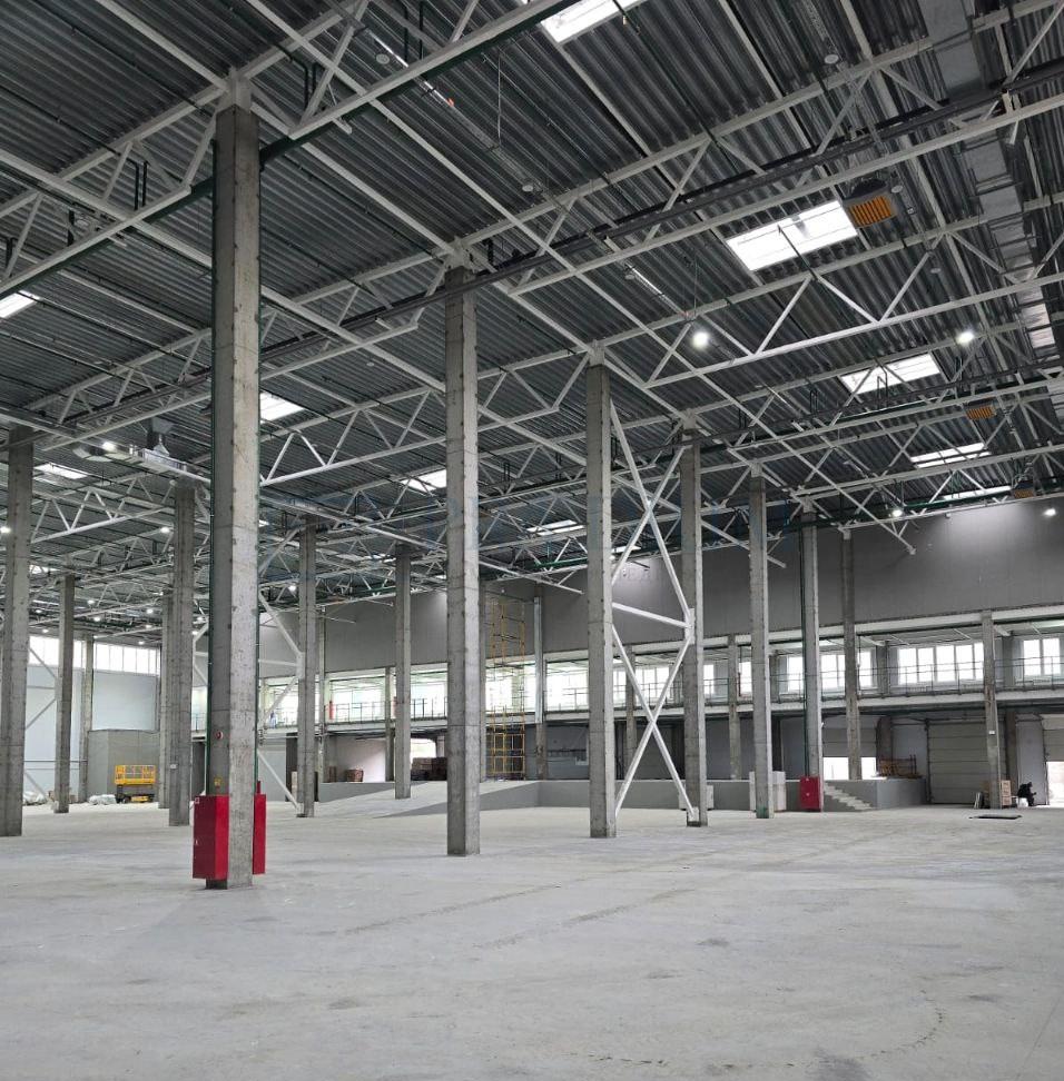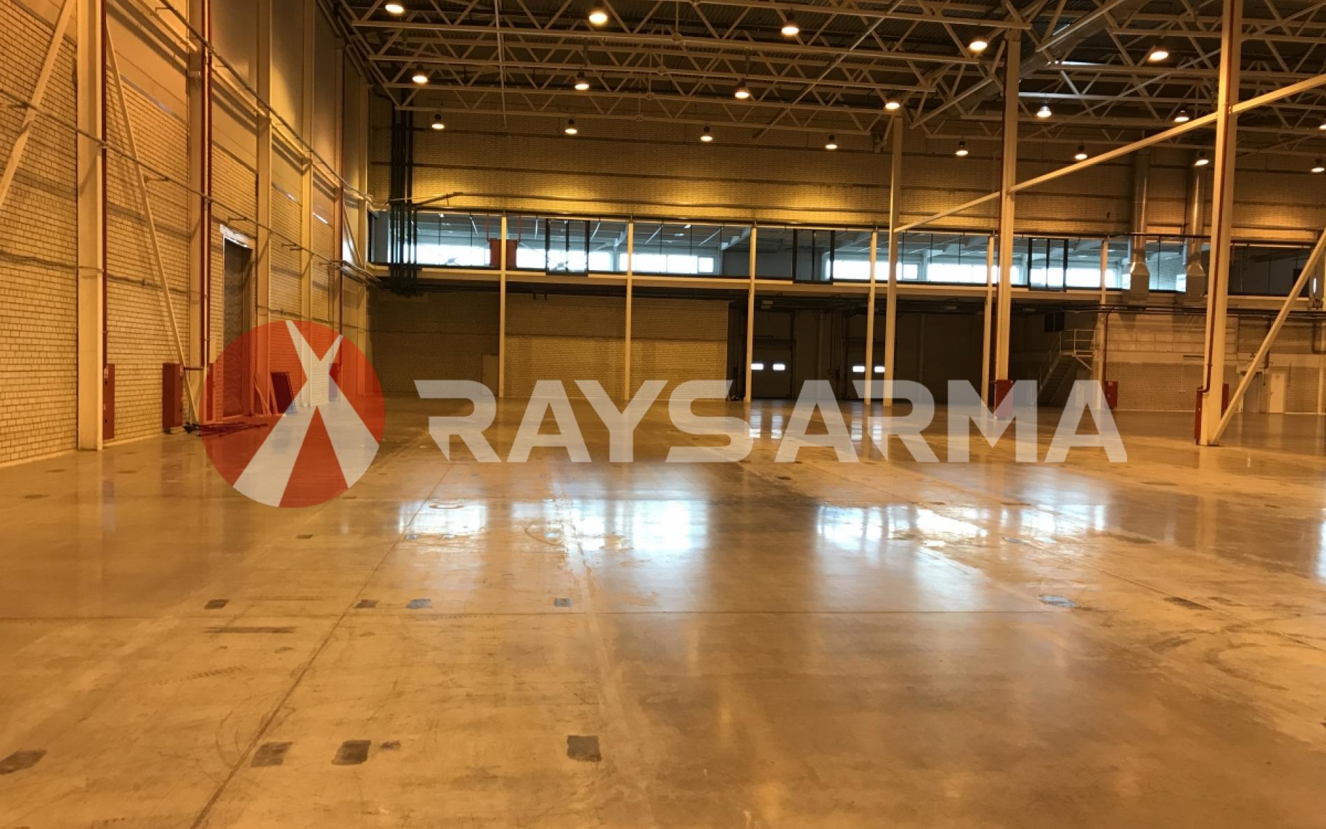 Полы - бетон с антипылью. Высота потолков - 12.5 м.