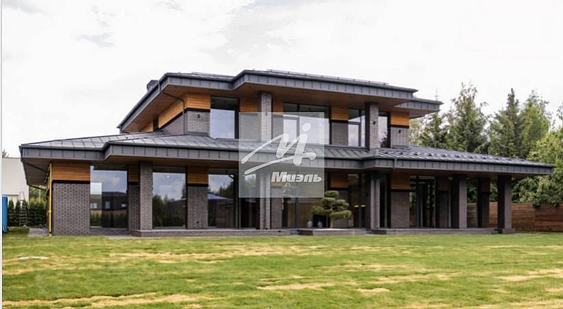 Фасад резиденции облицован коричневым клинкерным кирпичом и термодеревом. В коттедже выполнена отделка в современном стиле с использованием камня и дерева, выполнено озеленение придомовой территории. В коттеджном поселке Новое Николино современные инженерные коммуникации: газоснабжение - магистральное, подведено электричество, водоснабжение - централизованное, канализация - центральная. В КП круглосуточная охрана.