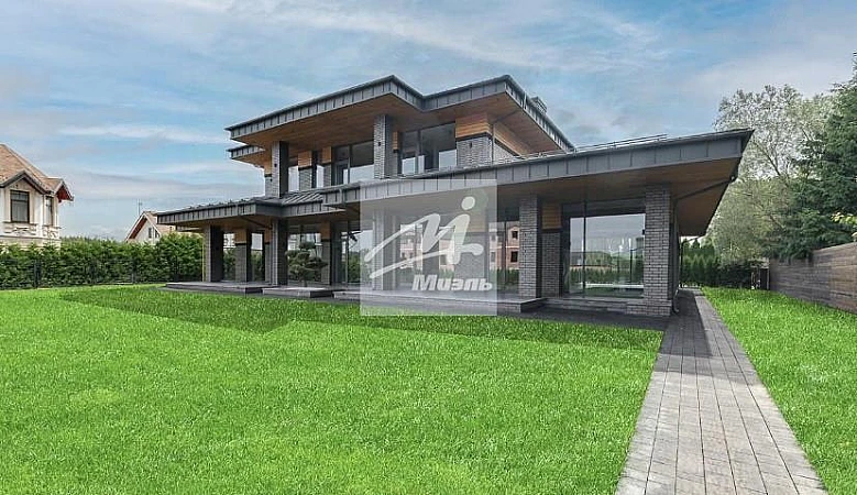 Загородный дом в современном стиле в КП Новое Николино. Коттеджный поселок расположен на Рублево-Успенском шоссе в 23 км от МКАД.