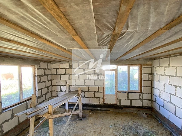 Дом без внутренней отделки. Фундамент: ленточный. Дом построен из пеноблоков. Крыша: металлочерепица. Окна: пластиковые стеклопакеты.