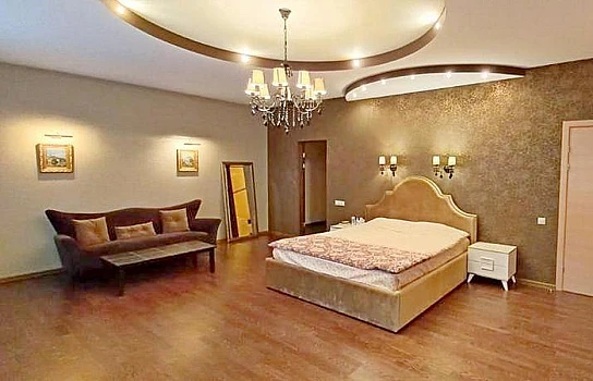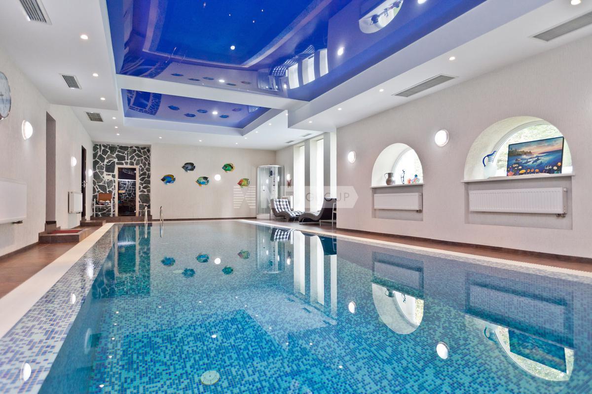 1 этаж: каминный зал, гостиная, кухня-столовая, кабинет, гостевая спальня, ванная комната, гардеробная, бассейн, сауна, душевая, помещение для персонала, постирочная, бойлерная, гараж на 2 м/м.