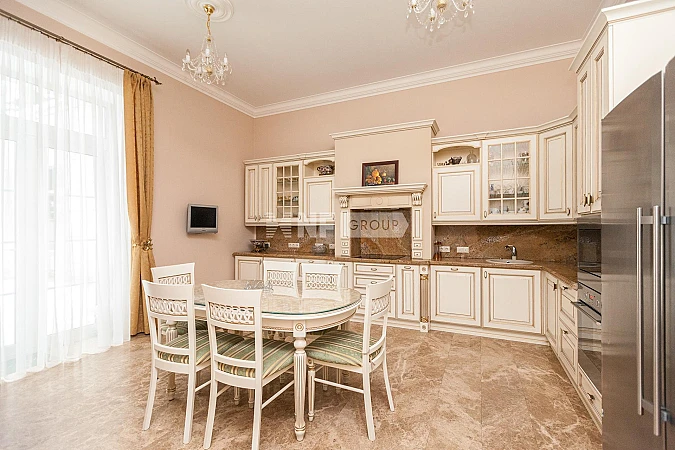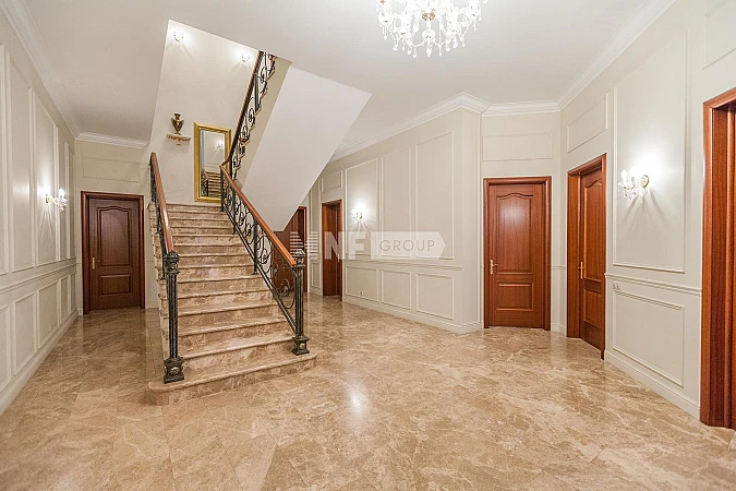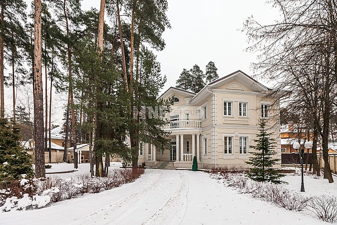 Превосходная загородная усадьба расположена в элитном коттеджном поселке «Сосновый бор» в окружении хвойного леса. Трехуровневый особняк построен по канонам классической архитектуры. Внутренний дизайн дома выполнен в лучших традициях русских дворянских усадеб: лестницы украшены коваными перилами, пол покрыт мрамором и паркетом, а свет излучают массивные хрустальные люстры. Декор выполнен в теплых пастельных тонах. Дом отличается функциональной планировкой. Прекрасно оборудованный SPA-комплекс с сауной и бассейном с противотоком расположен во флигеле и соединен с домом крытым переходом. Приусадебный участок представляет собой часть облагороженного леса с вековыми соснами и липами. На территории оборудованы зона барбекю, детская площадка и парковка. В непосредственной близости находится развитая инфраструктура городов Пушкина и Ивантеевки.