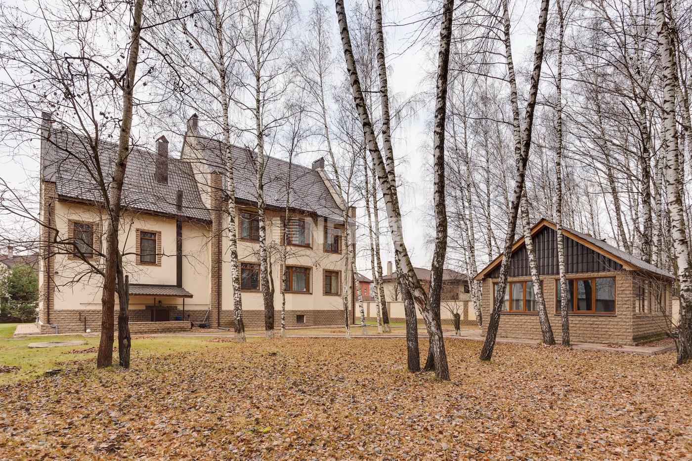 На участке 25 соток разместился основной трёхэтажный дом 890 кв. м. с цокольным и мансардным этажами и летний дом с камином. Итальянский дизайн внутренней отделки с применением дорогих материалов и натурального мрамора.