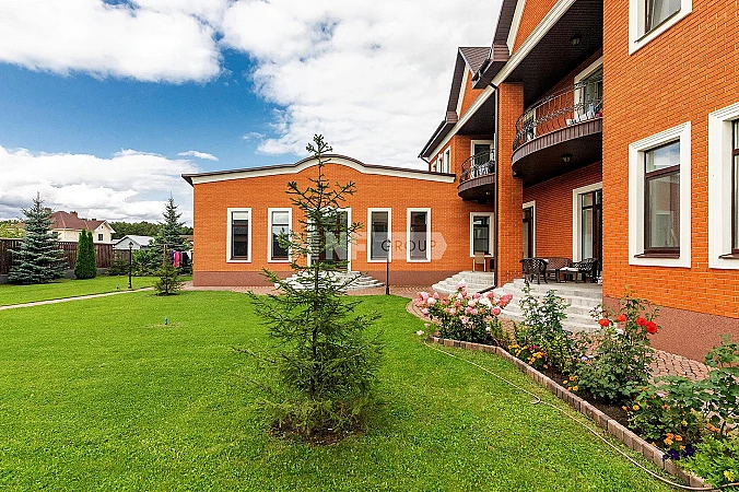 Загородный дом 780 квадратных метров находится в охраняемом коттеджном посёлке Чистые Пруды. Дом построен из двойного белорусского кирпича, облицован немецким кирпичом Фирмы Вилленберг с эффектом велюра, фундамент полностью монолитный -глубина 3,20 см.