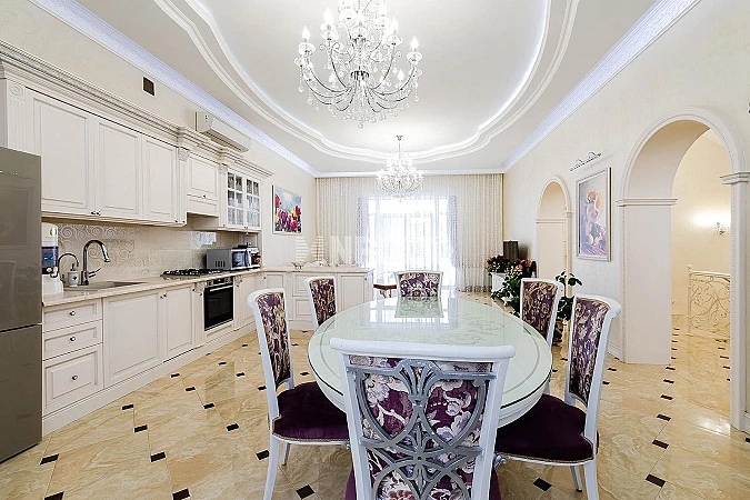 Кровля мягкая черепица. Год постройки 2013. Дом можно использовать как для отдельных двух семей, так и для одной. В доме выполнен ремонт в стиле современная классика. Дом полностью мебелирован, мебель итальянская, люстры и плитка итальянские. Сантехника Hansgrue. Лестницы, столешницы и подоконники из мрамора.