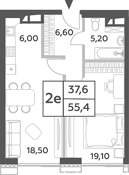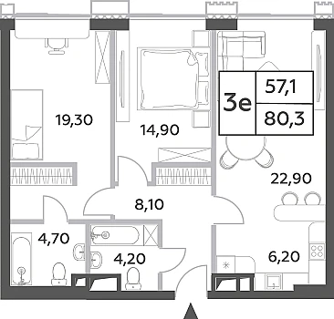 Продается 2-к. квартира номер 274 общей площадью 63.3 кв.м. на 22-м этаже 30 этажного дома, корпус 2.1. С отделкой White Box.