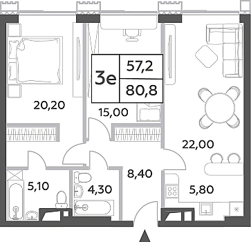 Купить 2к квартиру 63 м² в ЖК Moments (Моментс)