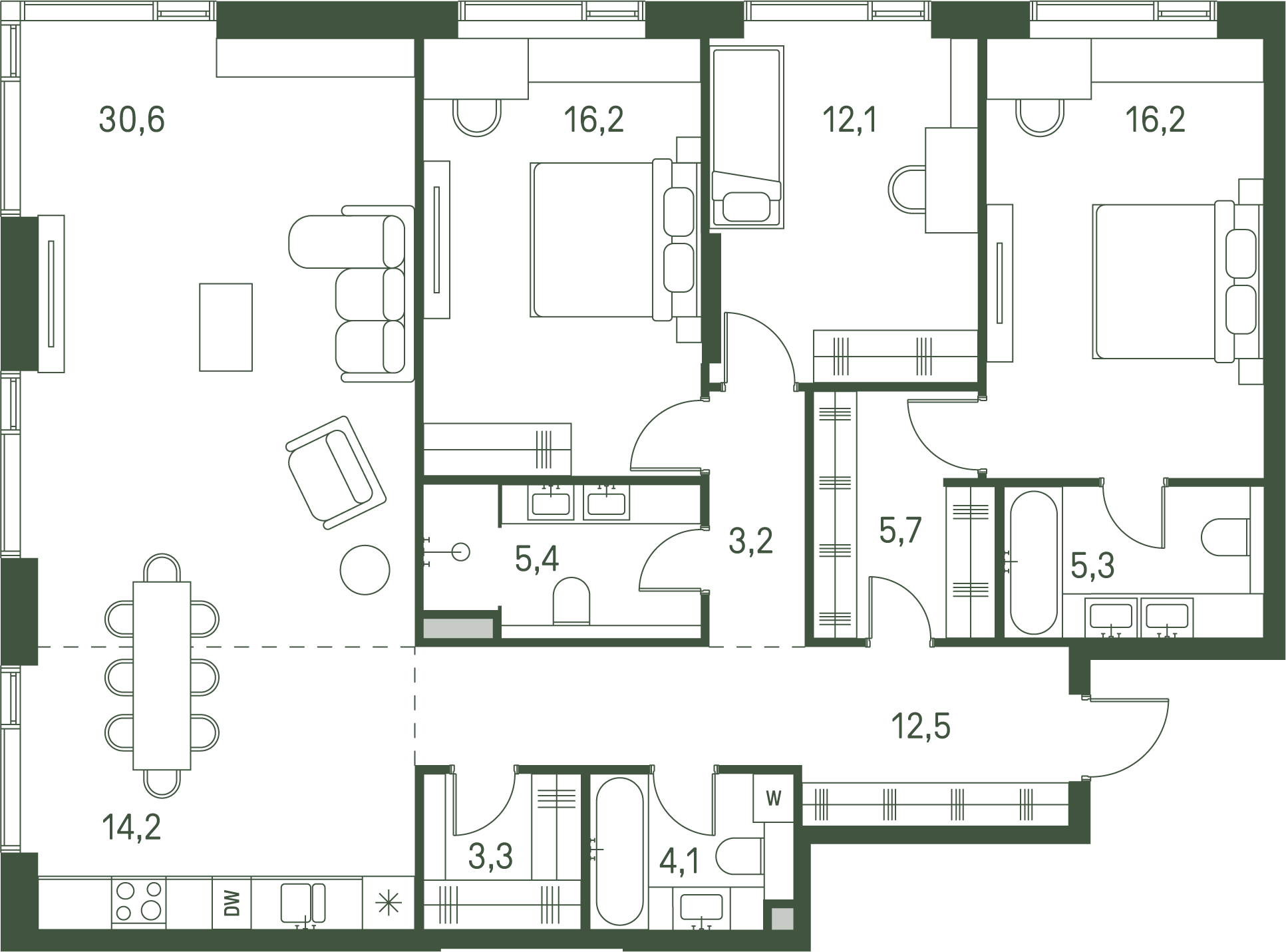 Купить 3к квартиру 128 м² в ЖК Moments (Моментс)