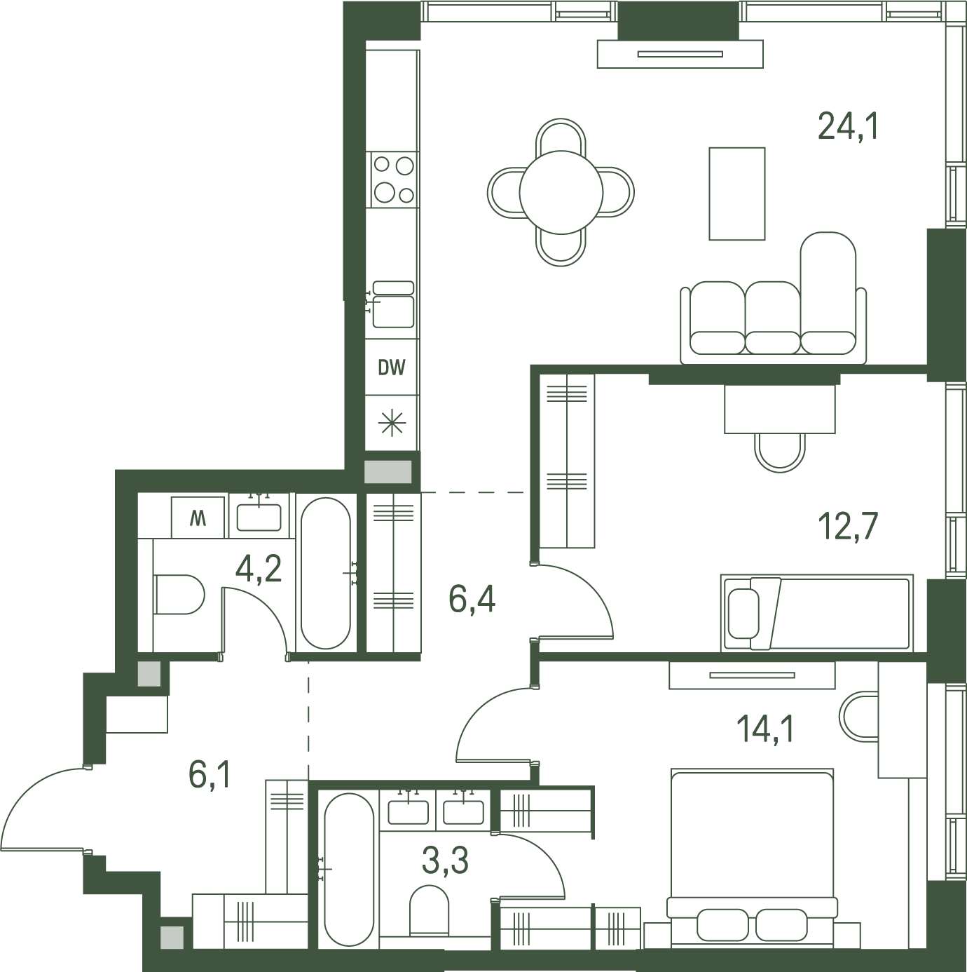 Купить 2к квартиру 70 м² в ЖК Moments (Моментс)