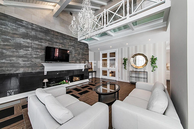 Красивый загородный дом в стиле шале – мечта многих жителей мегаполиса. Такой стиль набрал популярность благодаря поклонникам активного отдыха. Один только внешний вид сразу напоминает о европейских горнолыжных курортах, вдали от шумных мегаполисов. Отличительной особенностью является двускатная крыша с широкими бортами, такая конструкция отлично защищает дом от порывов ветра. В комнатах много естественного света, панорамное остекление. Дизайн интерьера отвечает всем современным тенденциям, в отделке преобладают исключительно натуральные материалы. Изюминкой проекта можно считать просторную SPA-зону со своим выходом на участок, с бассейном (10х4) и хамамом. Продается со встроенной мебелью.