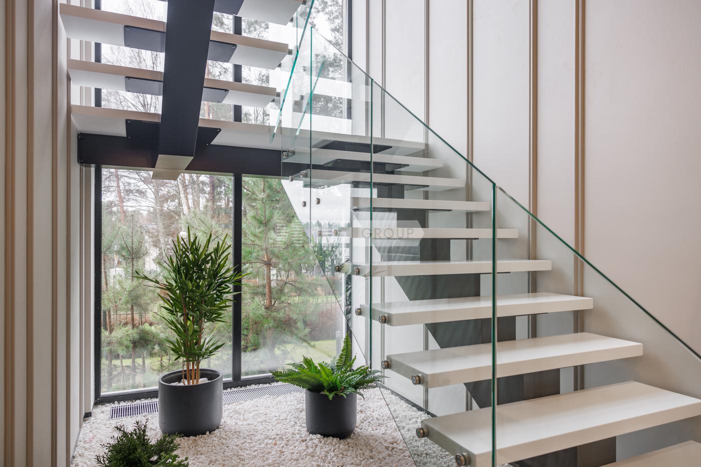 Дом в современном стиле на просторном лесном участке в дальней, приватной части охраняемого коттеджного поселка Ренессанс Парк. Предлагается в состоянии под ключ с мебелью, в доме установлена приточно-вытяжная вентиляция. К дому примыкает гараж на 2 м/м с квартирой для персонала.