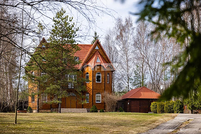 По периметру многолетние лесные деревья. На участке баня и сарай. Баня с финской печью. Бассейн 180 кубометров, длинна 15 метров с ключевой водой, система водоочистки и газовый подогрев. Отапливаемый гараж с мастерской и котельной. Участок выровнен и облагорожен, вдоль протекает ручей, выложенный булыжниками.