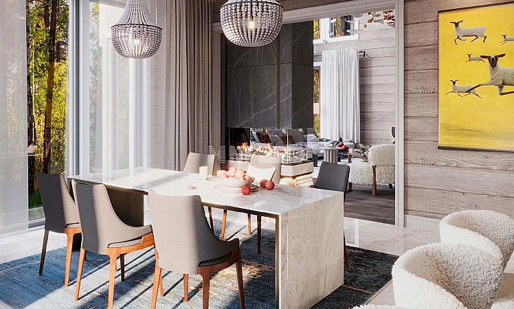• Панорамные окна со скрытой фурнитурой и алюминиевым профилем обеспечат шумо- и теплоизоляцию, а также создадут неповторимое ощущение близости к природе.