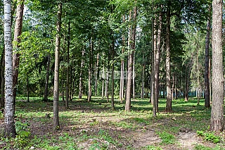 Прилесной участок, есть лес на участке. Закрытая тупиковая улица, ворота. На участке 2 маленьких дома.