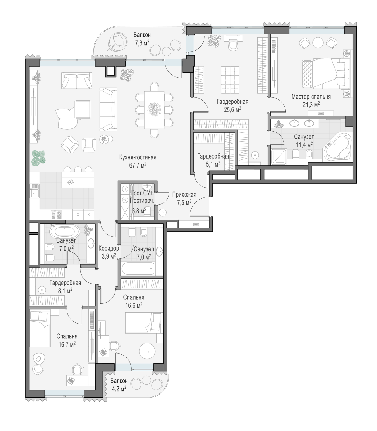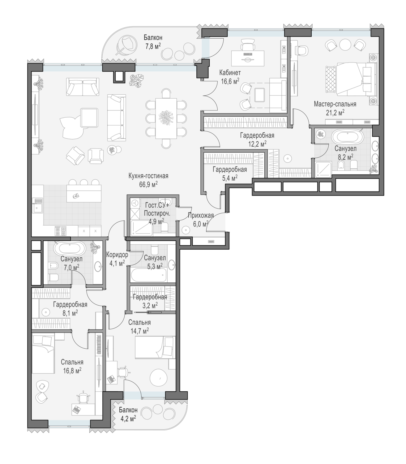 Купить 5к квартиру 201 м² в клубном доме Чистые Пруды