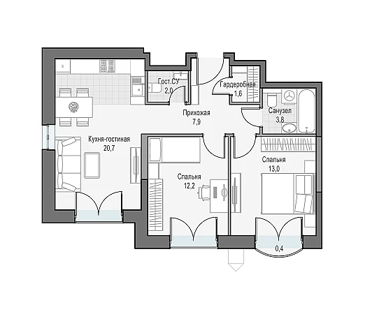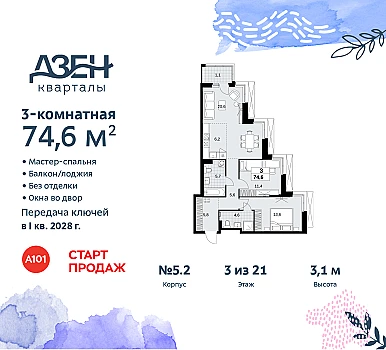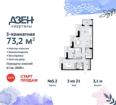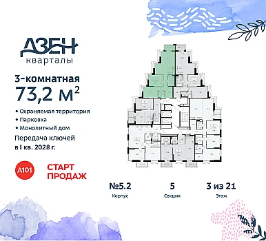 Купить 2к квартиру 61 м² в ЖК Достижение