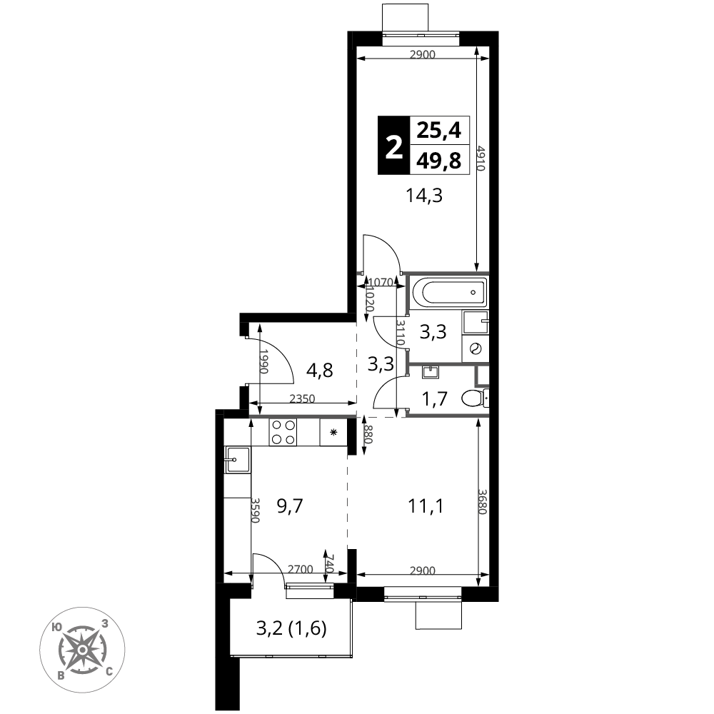 Односпальная квартира с угловым остеклением и большим балконом. Окна выходят на Восток в сторону парка.