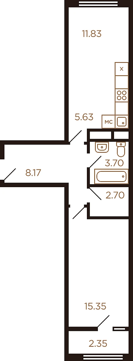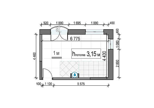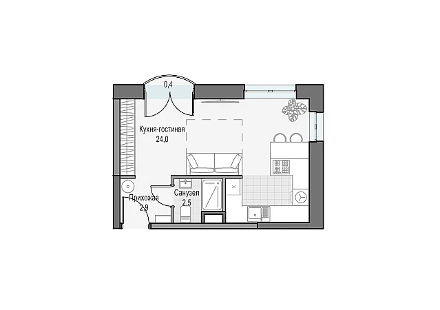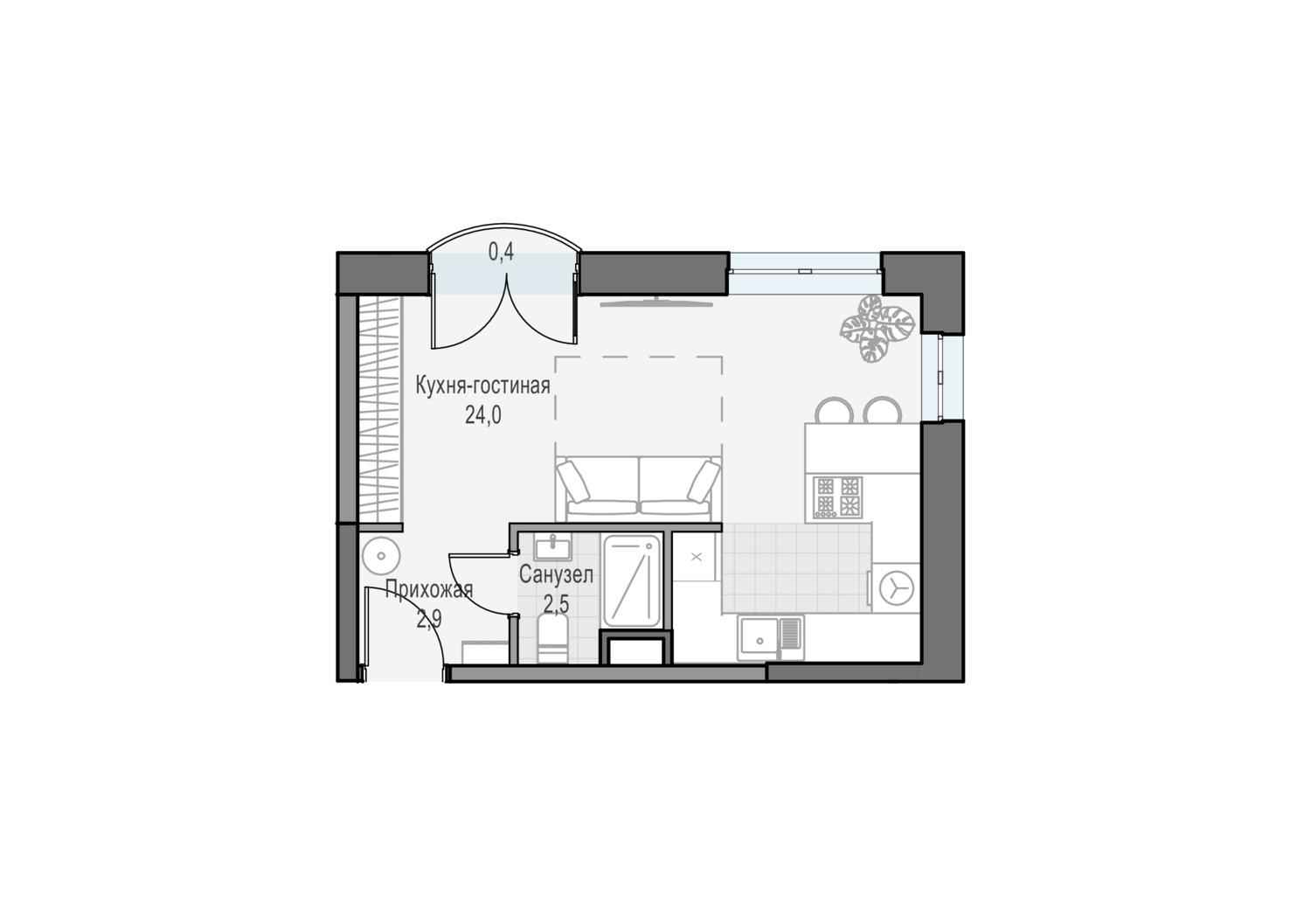Квартира-студия с тремя окнами и балконом. Окна выходят на Юго-Восток в сторону парка.
