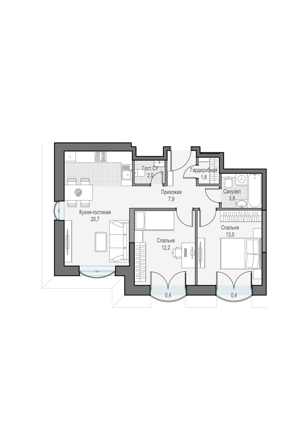 Купить 2к квартиру 61 м² в ЖК Достижение