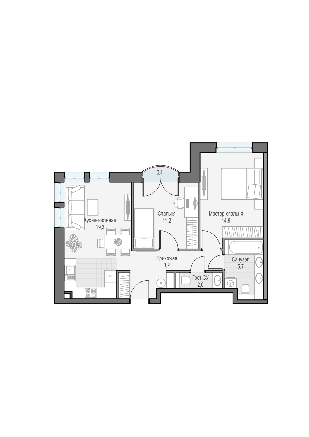 Купить 2к квартиру 61 м² в ЖК Достижение