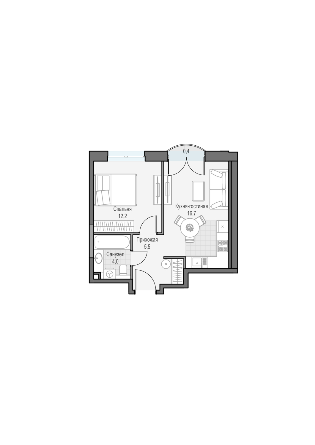 Односпальная квартира с кухней-гостиной с панорамным остеклением и балконом и изолированной спальней. Окна выходят в сторону парка Дубовой рощи и телебашни Останкино.