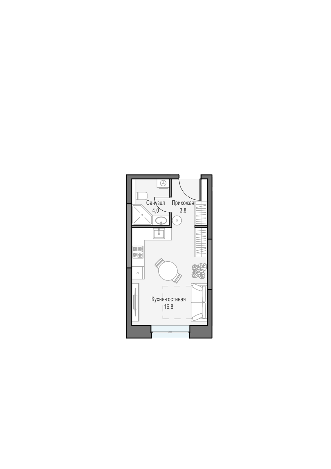 Классическая квартира-студия с эргономичной планировкой. Окна выходят на двор-долину на западную сторону света.