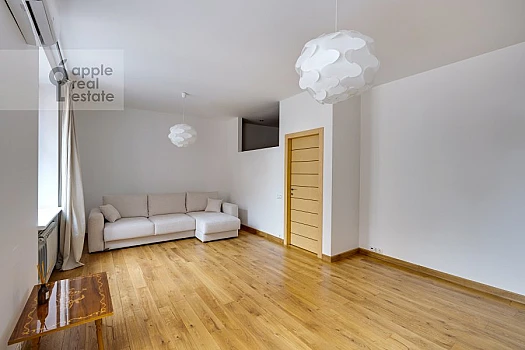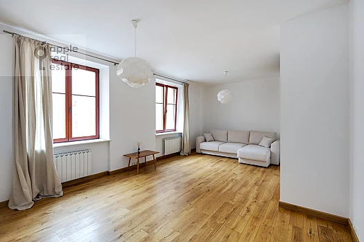 Двухэтажный Penthouse с просторной террасой 26,9 кв.м. Высота потолка - 6,5 м. В кухне-гостиной дровяной камин и французские балконы. Окна выходят на Запад.