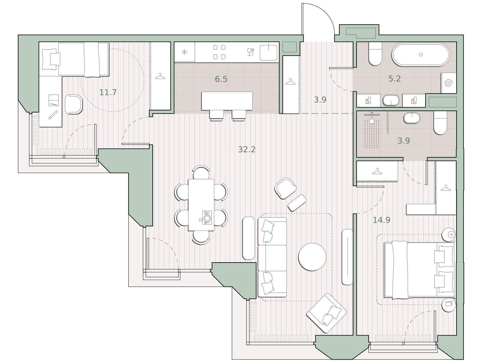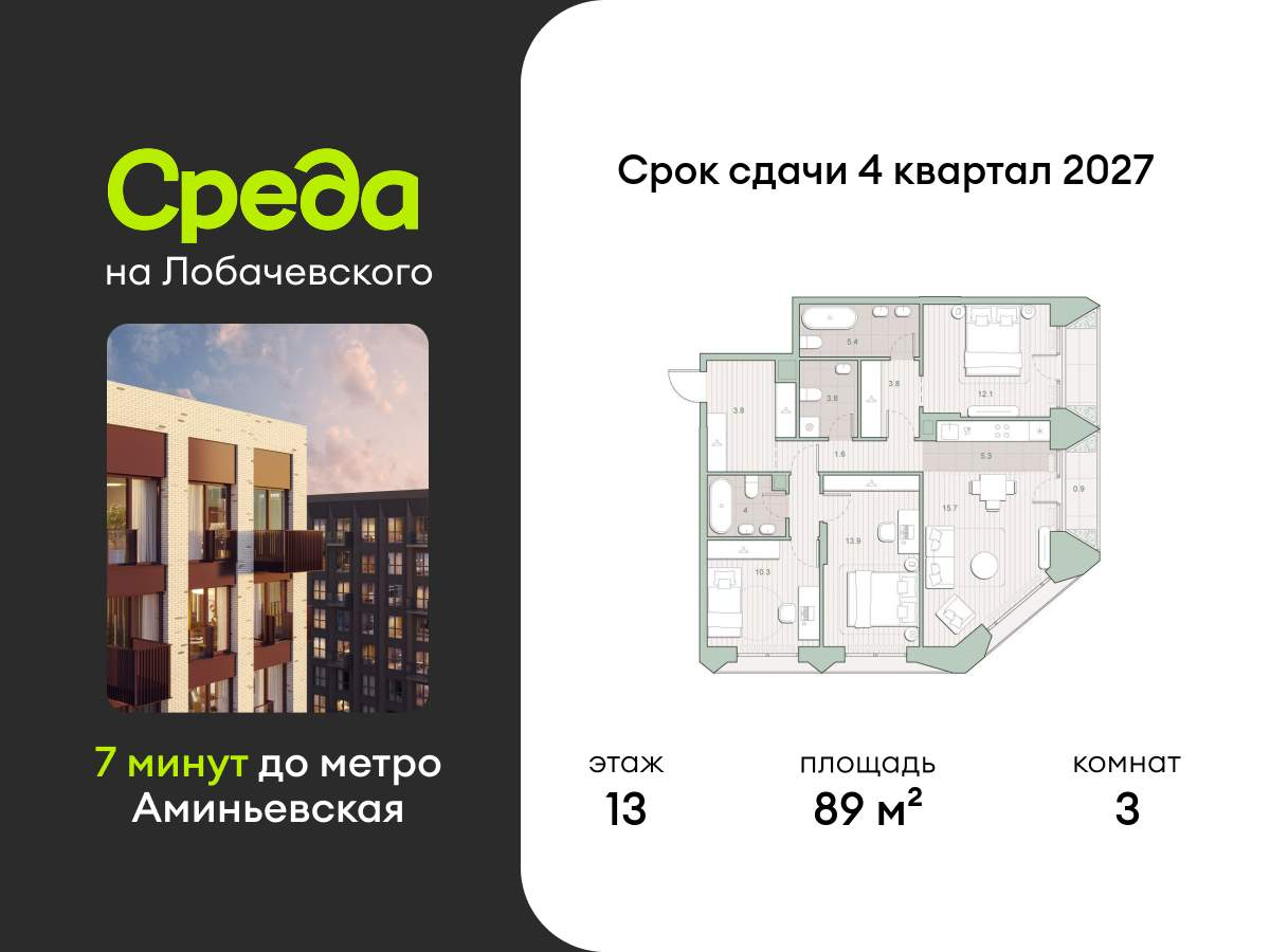Просторная трехспальная квартира с окнами на две стороны света. Из мастер-спальни в вечернее время вы сможете наслаждаться закатом и панорамой города.