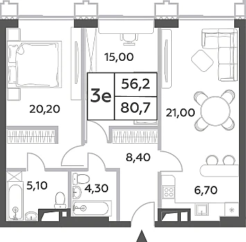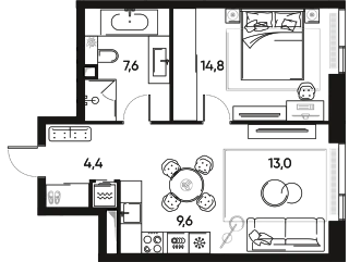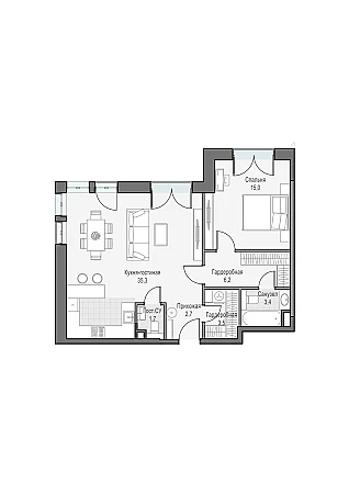 Двуспальная квартира с угловым остеклением в кухне-гостиной. Окна выходят на Восток, что позволит наслаждаться рассветами м видами на Останкинскую телебашню.