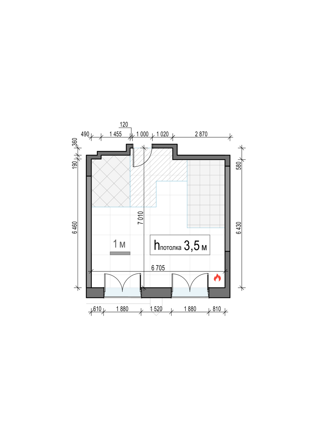 High level с камином и потолком 3,5 м. Французские балконы выходят на Запад, что позволит наслаждаться видами заката.