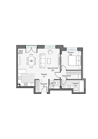 Квартира с двумя спальнями и кухней-гостиной с французским балконом. Окна выходят на Восток, на парк Дубовая роща и Останкинскую башню.