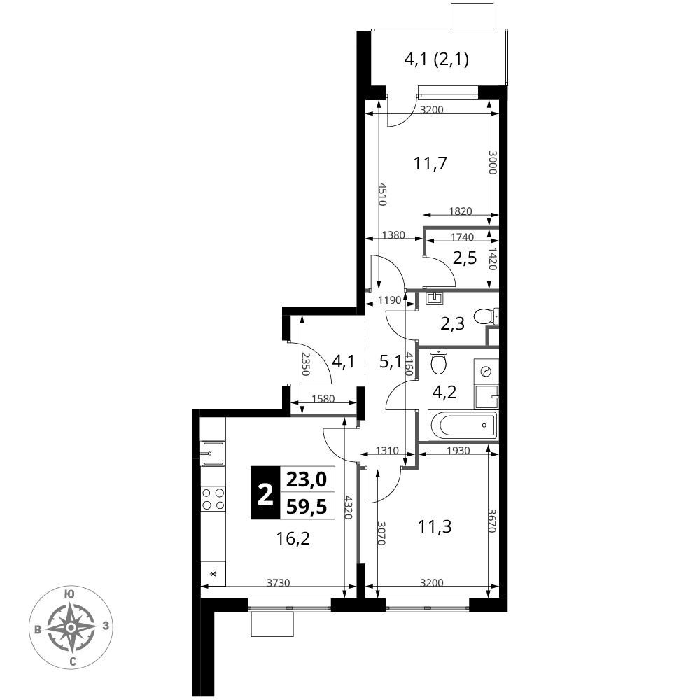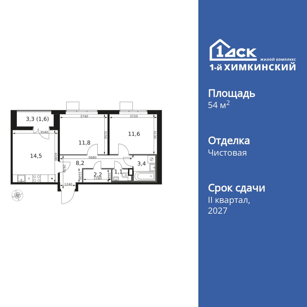 Односпальная квартира c просторной кухней-гостиной. Окна выходят на Восток, на парк Дубовая роща и Останкинскую башню.