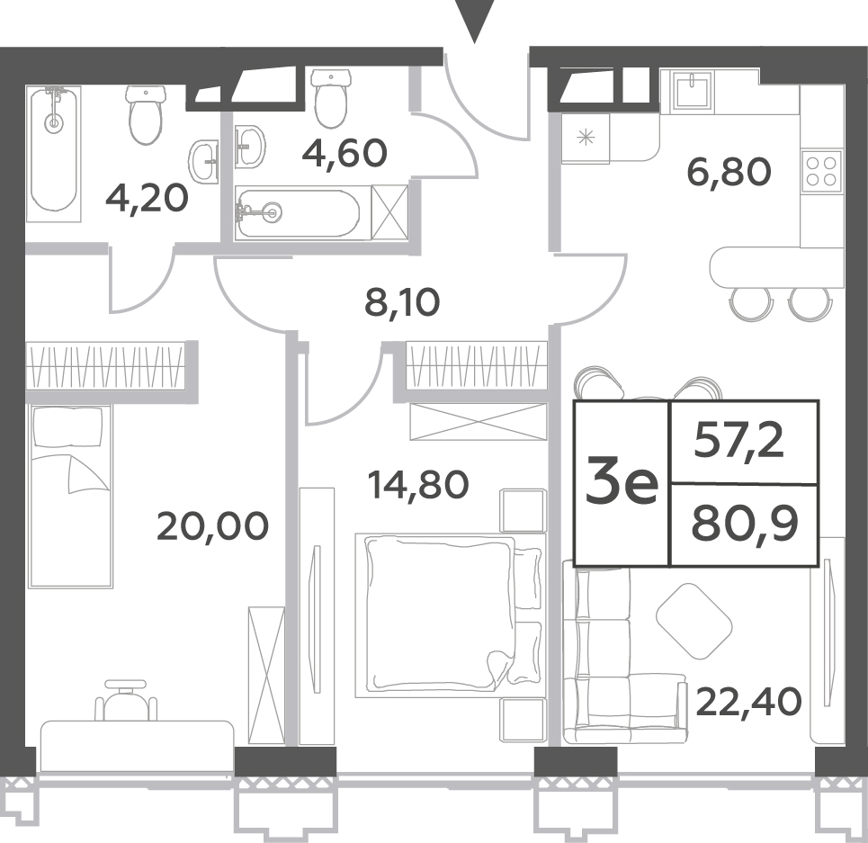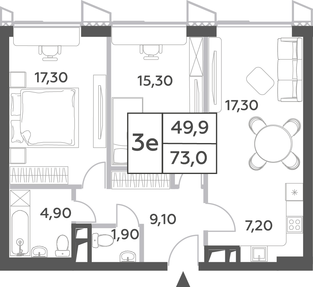 Купить 2к квартиру 77 м² в ЖК Достижение