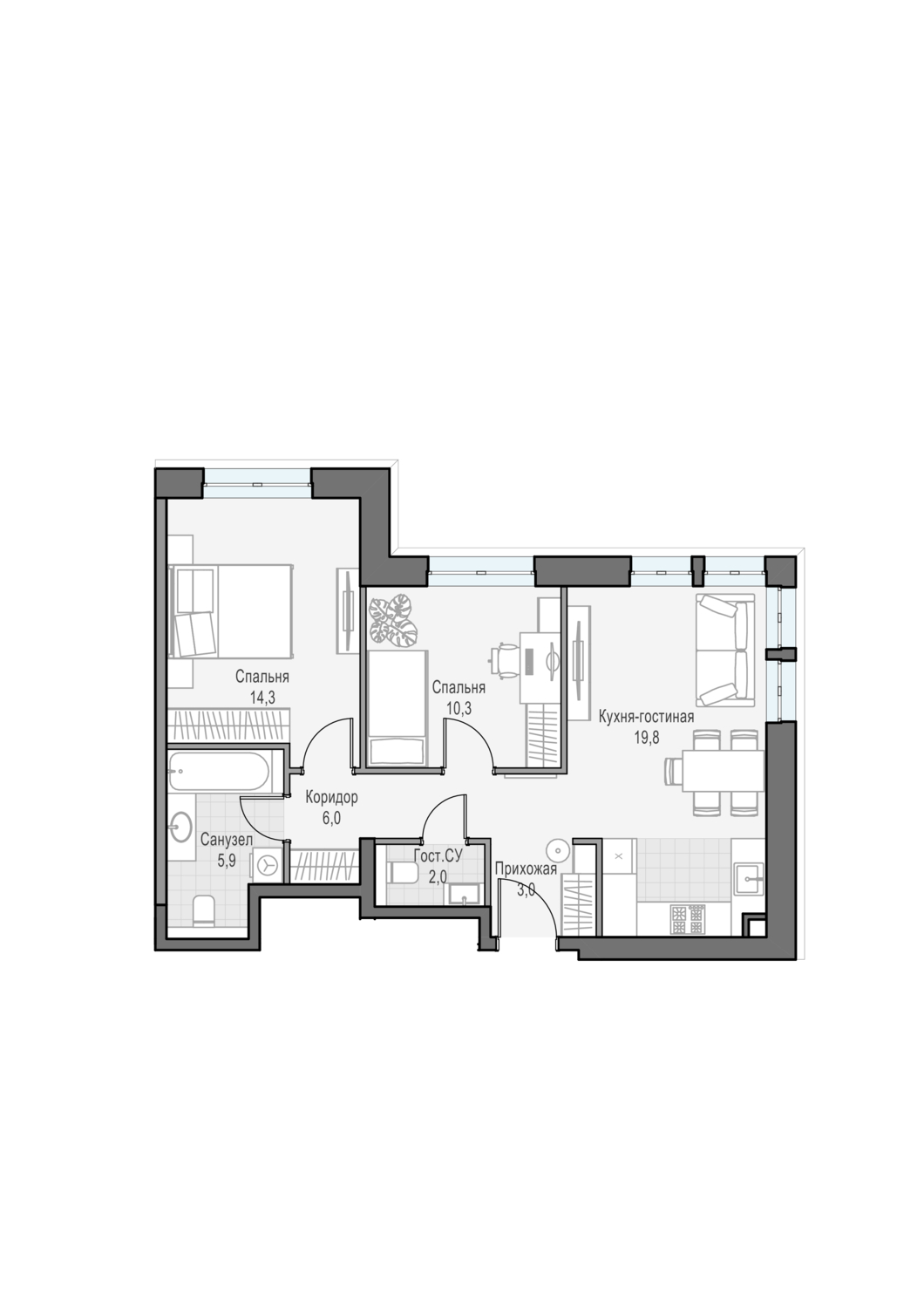 Купить 2к квартиру 60 м² в ЖК Достижение