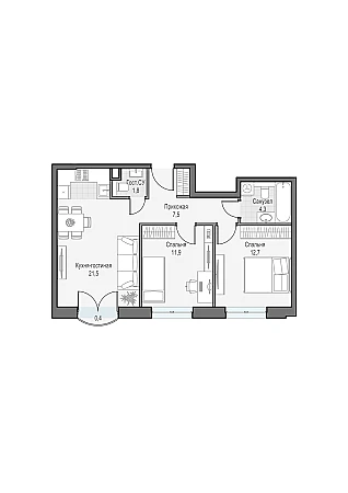 Купить 2к квартиру 59 м² в ЖК Достижение