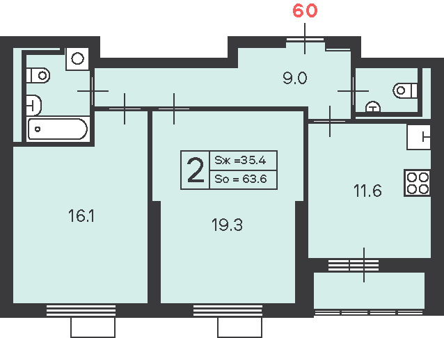 Купить 2к квартиру 63 м² в []