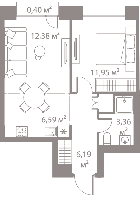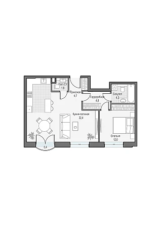 Двуспальная квартира с кухней-гостиной , в квартире есть балкон ,две изолированные спальни и два санузла. Окна выходят на ландшафтный двор.
